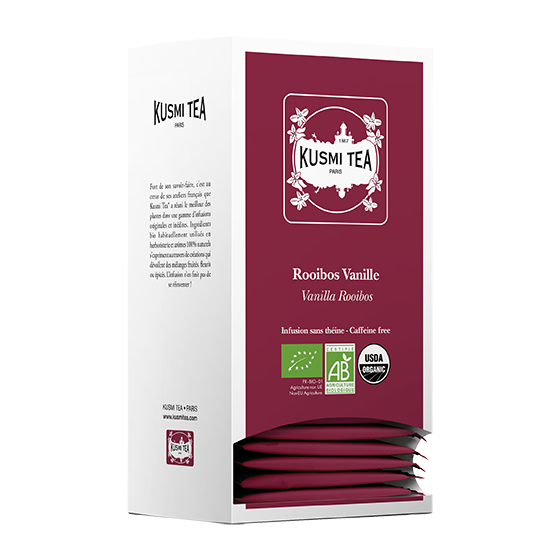 ROOIBOS VANILLE (25 pièces) Référence : 046819 EAN conso : 3585810082233 EAN carton : 3663871014674 Carton : 6 unités Palette : 102 cartons Poids : 300gr Prix de vente conseillé : 9,50€ |