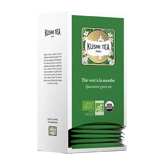 THÉ VERT À LA MENTHE (25 pièces) Référence : 046821 EAN conso : 3585810076508 EAN carton : 3663871012403 Carton : 6 unités Palette : 102 cartons Poids : 300gr Prix de vente conseillé : 9,50€ |