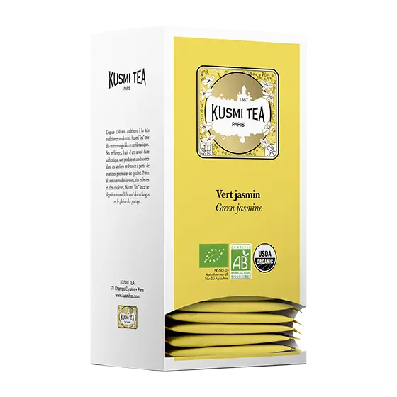 THÉ VERT JASMIN (25 pièces) Référence : 046822 EAN conso : 3585810075600 EAN carton : 3663871012168 Carton : 6 unités Palette : 102 cartons Poids : 300gr Prix de vente conseillé : 9,50€ |